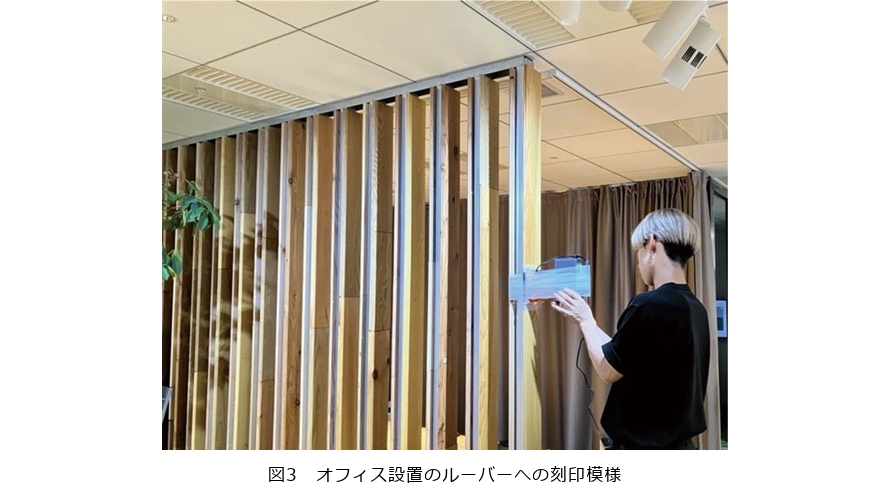 当社は、多種多様な専門分野をバックグラウンドに持つ社員がチームとなり、街づくりのコンサルやリサーチに取り組むことから、日頃の社内コミュニケーションを大事にしています。季節の節目等で仕事を離れた懇親の機会を設ける一方で、日頃の活動成果を称え合い、社員のさらなるチャレンジへつなげる営みとして、今年度は社内表彰を制度化し開始しました。会社の成長に向けて果敢に取り組んでくれた社員の成果は、オフィスで見える化し、再生木材を利用した打合せ室のルーバーに表彰者名をレーザー刻印して残していくことにしました。社員の取り組みが目に見えるかたちで毎年増えていくのが楽しみです(図3)。