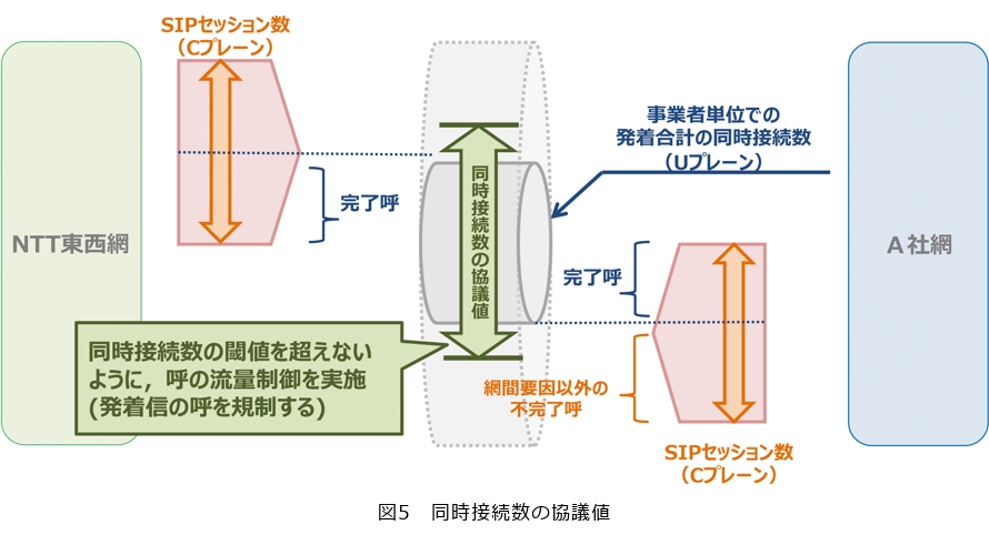 IP-POIでの接続事業者との接続は、事前に接続事業者と同時接続数を協議し、必要な帯域およびリソースを確保します(図5)。この帯域およびリソースは、予測されるトラフィック量に基づいて構築し、通話品質を確保します。また、予測されたトラフィック量を超えた場合でも、通話品質を維持し、他の通話への影響を最小限に抑える適切なトラフィック制御を行う必要がありました。