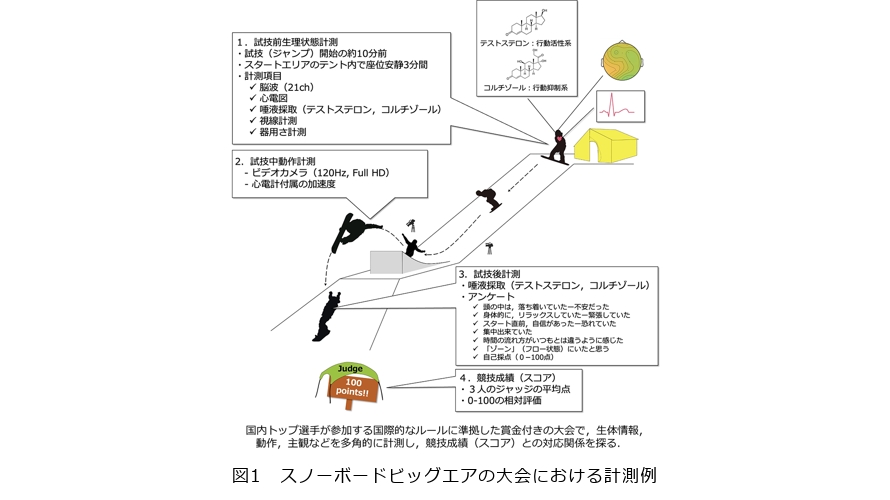 この研究では、脳波、心拍、呼吸をはじめ、全身からさまざまな生体信号を計測し、それらの相互関係とスコアの関係を分析しています。まだ論文未公刊なので詳細は控えますが、脳と心臓の関係性がスコアに強く影響するという新たな発見がありました。脳と心臓の関係は神経科学の分野においてホットトピックスの1つなのですが、私たちの研究は先行研究とは全く異なるパラメータに着目しています。