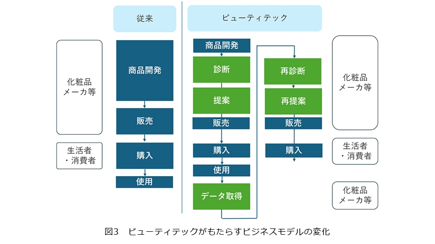 ビューティテックの本質は、美容分野でデジタルを活用するという意味にとどまらず、ビジネスモデルの転換にあります。