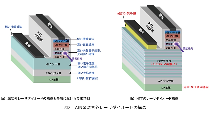NTTの深紫外レーザダイオード構造