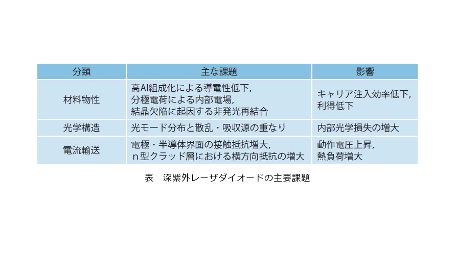 深紫外レーザダイオードの研究動向と技術的課題