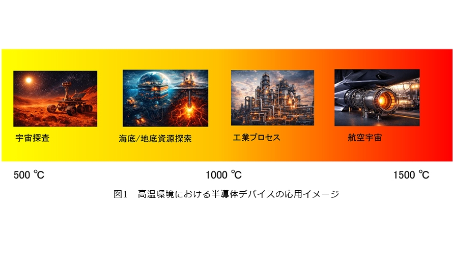 さらに、高温環境に加えて放射線が存在する極限環境では、半導体デバイスに対する要求は一層厳しくなります。宇宙や原子力の分野では、温度条件に加えて放射線による特性劣化や誤動作が問題となります。このような環境においても安定して動作する半導体デバイスが実現すれば、極限環境下での計測や監視、さらには制御機能の高度化につながります(図1)。