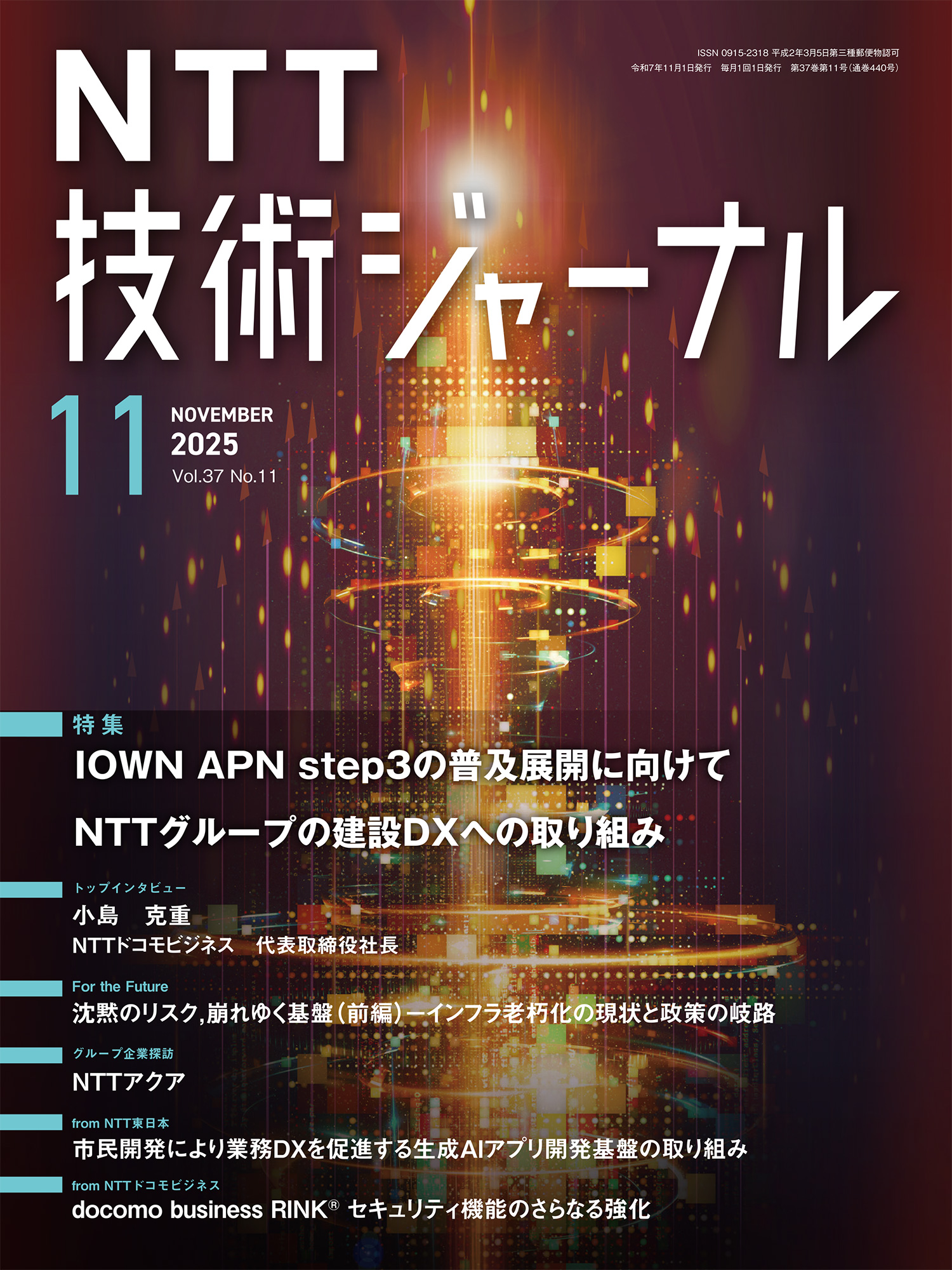 11NOVEMBER 2025vol.37 NTT技術ジャーナル 2025年11月号 発行日 2025年11月1日(Web) ISSN 2758-7266 / (冊子) ISSN 0915-2318 冊子PDFダウンロード